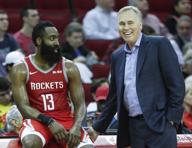 “天呐,”哈登说,“他是个天才。我觉得他为篮球变革做出的贡献远未得到足够认可,现在联盟各队都在用的打法,他早就带领太阳和我们火箭实践过了。”
