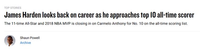 哈登只差21分进总分榜前十!转投火箭改变一生 后撤步成最大杀招